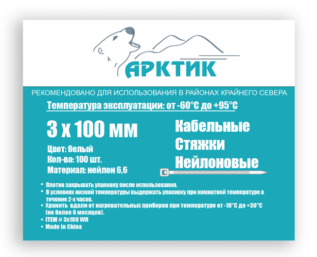 Стяжки Арктик всегда полновесные и изготовлены из высококачественного первичного сырья Нейлон 6.6 DuPont со специальной добавкой. Благодаря этому при падении температуры стяжки не становятся хрупкими, а усиливают свою прочность на разрыв и остаются гибкими. Вы можете увидеть это своими глазами, открыв любую карточку товара и посмотреть видео-обзор с производства стяжек Арктик.