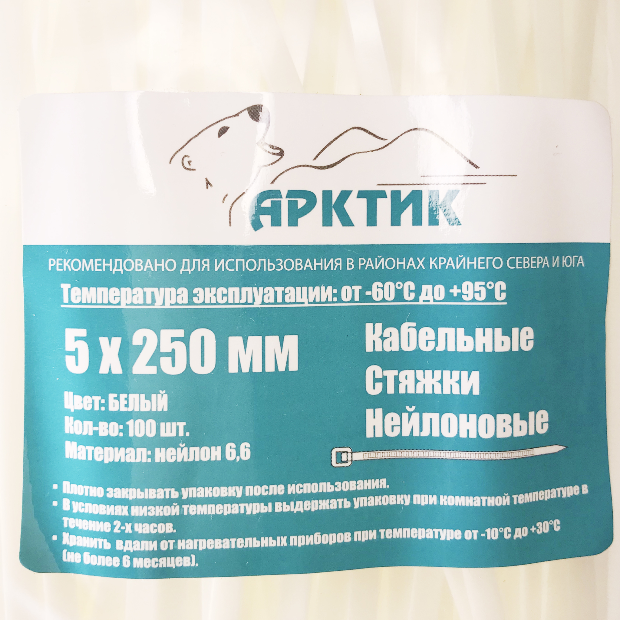Подробные технические характеристики белых морозостойких стяжек 5×250 АРКТИК смотрите ниже ↓