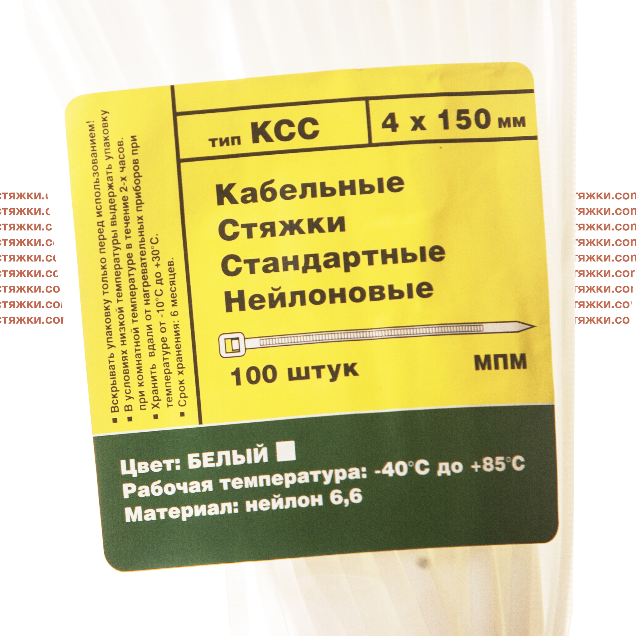 Стяжки кабельные стандартные КСС 4х150 белые | пластиковые хомуты для электромонтажа, строительства и упаковки