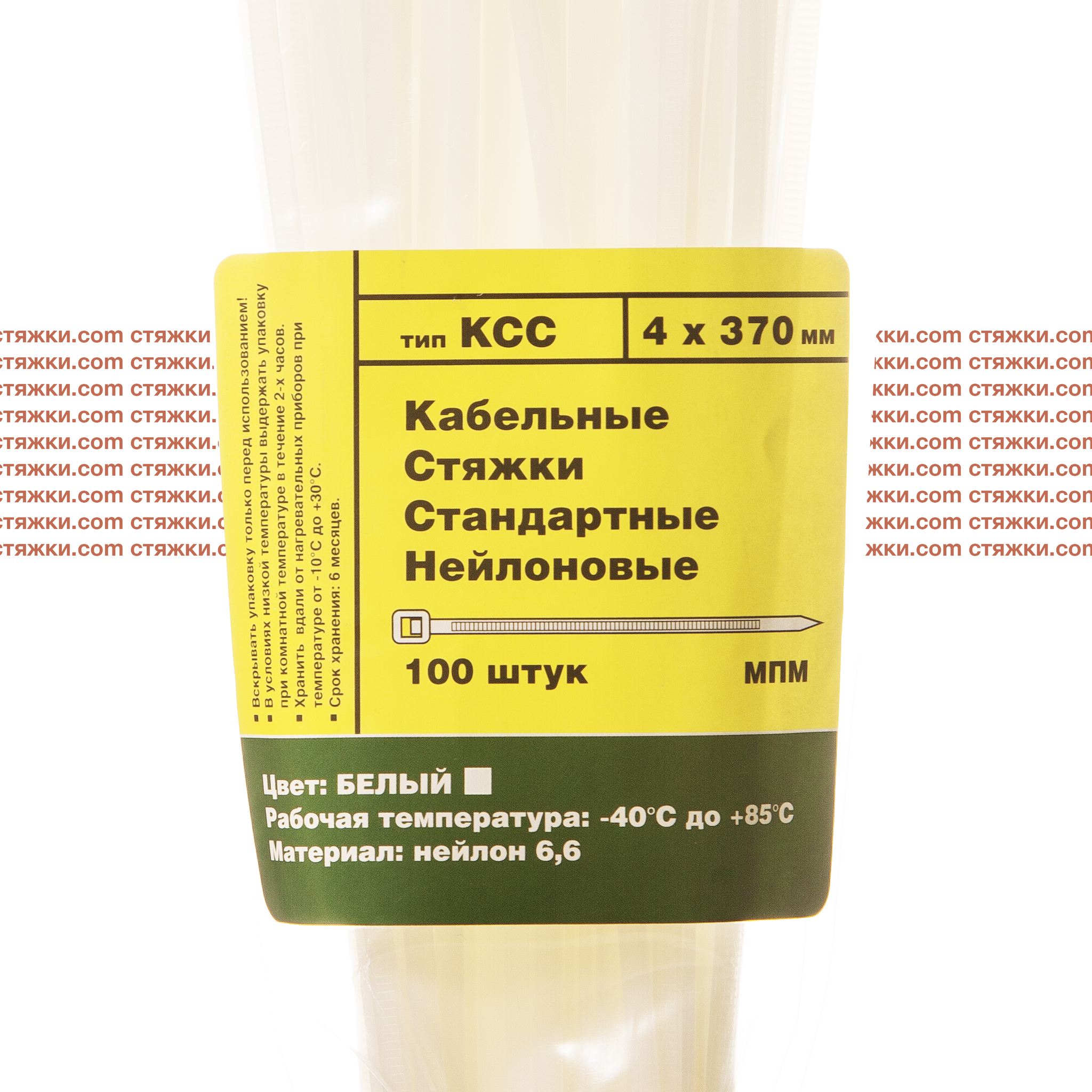 Стяжки кабельные стандартные КСС 4х370 белые | пластиковые хомуты для электромонтажа, строительства и упаковки