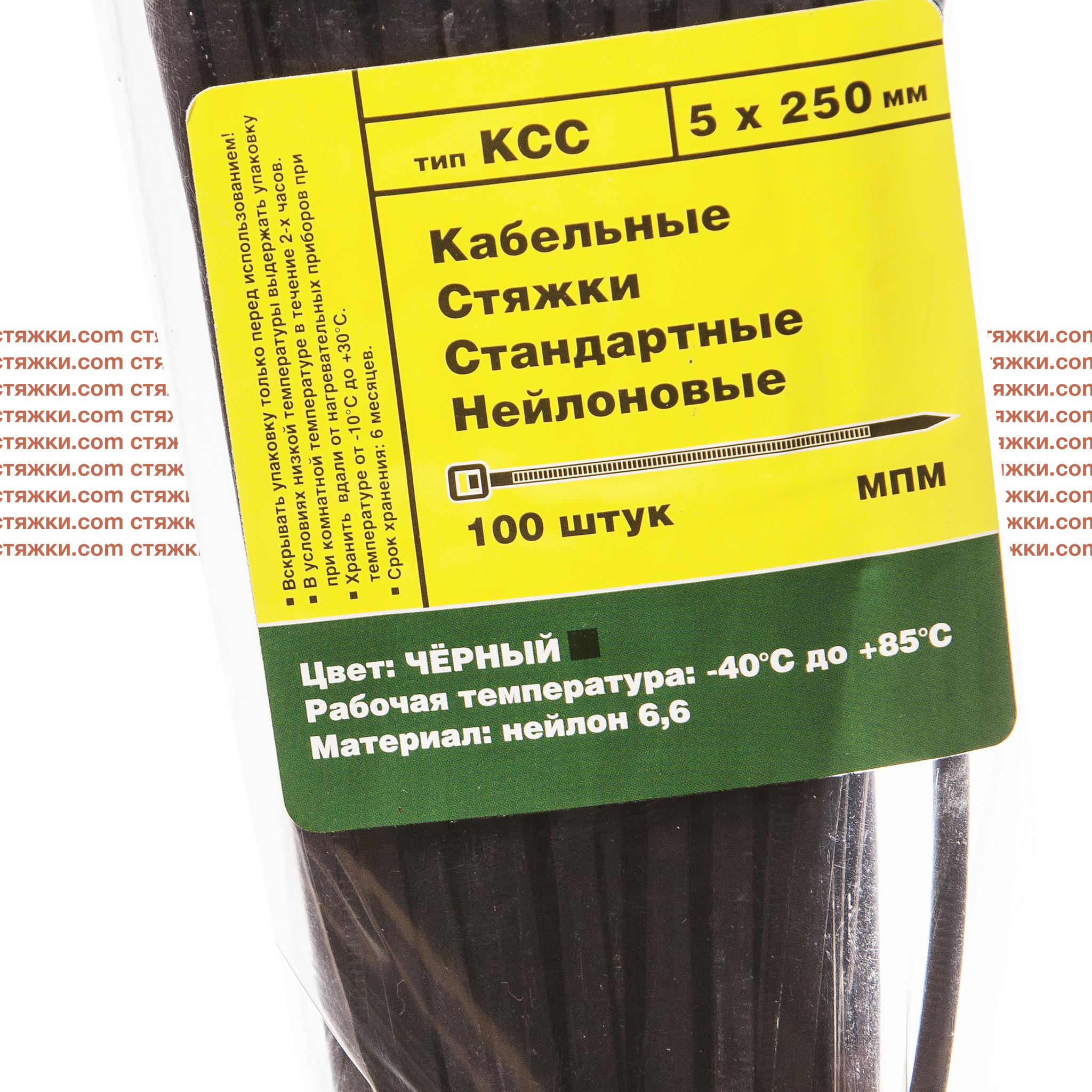 Стяжки кабельные стандартные КСС 5х250 черные | пластиковые хомуты для электромонтажа, строительства и упаковки