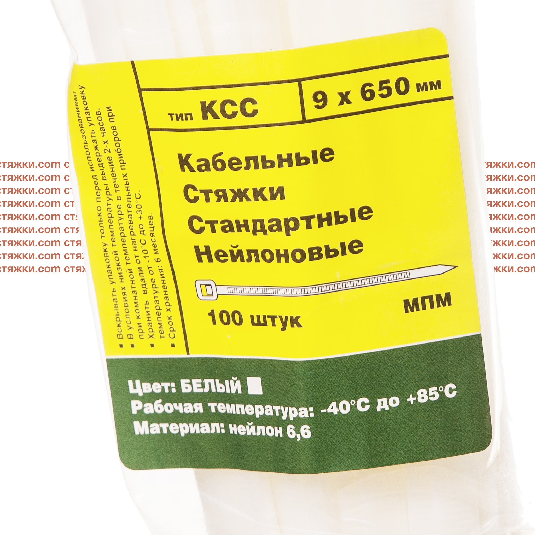 Стяжки кабельные стандартные КСС 9х650 белые | пластиковые хомуты для электромонтажа, строительства и упаковки